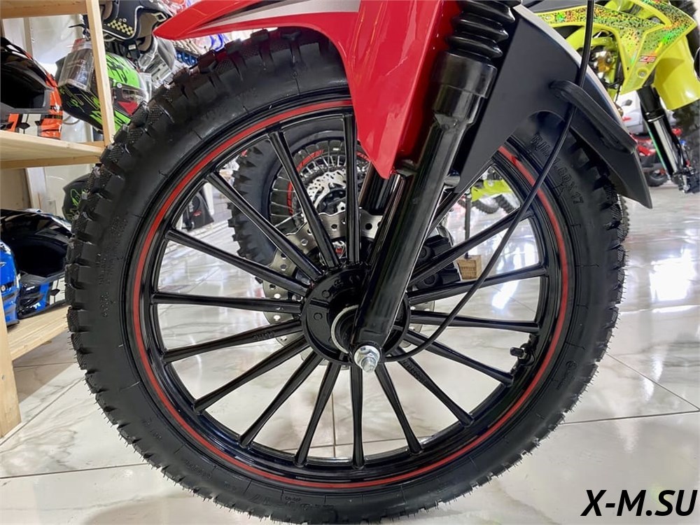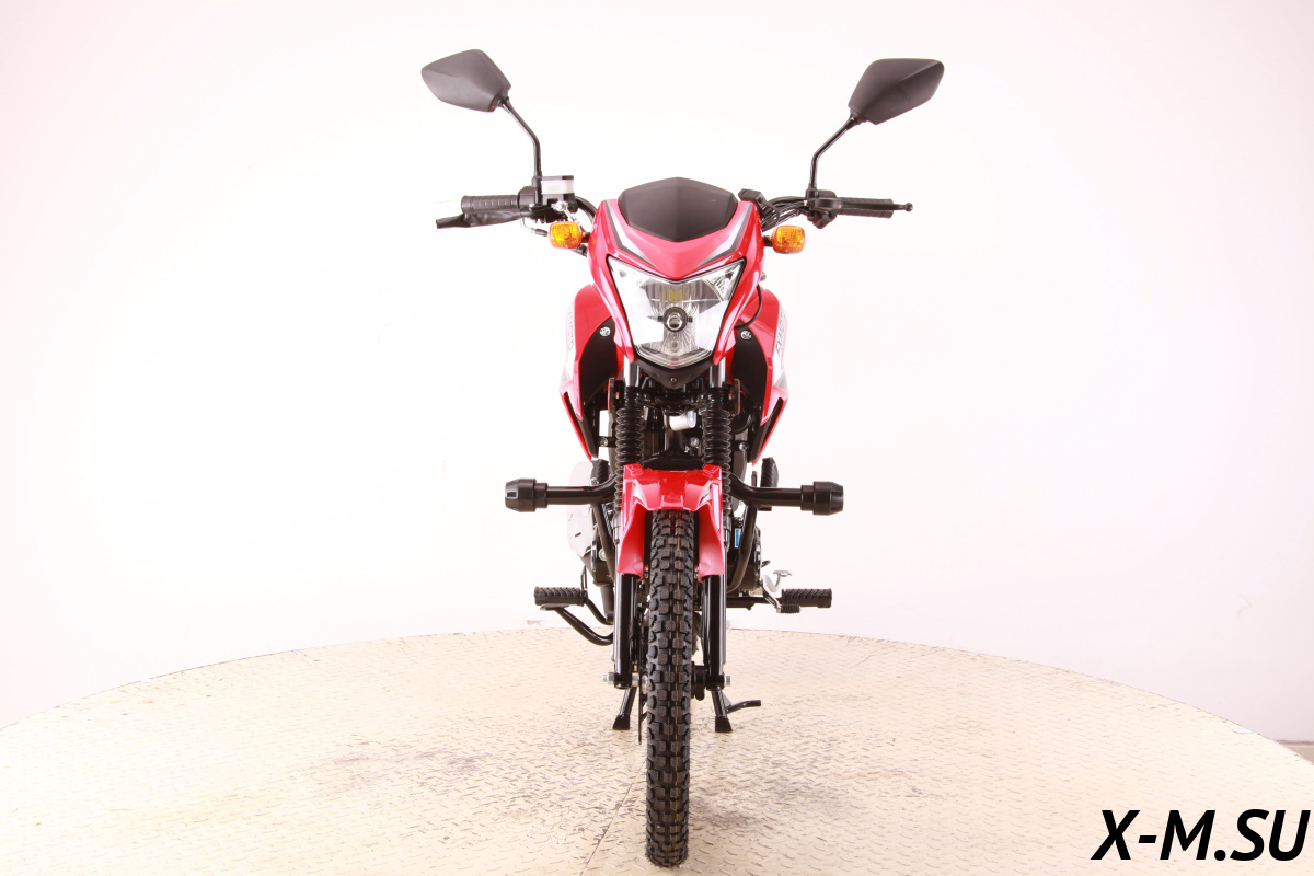 Модель рассчитана на рост 160–180 см, оснащена механической коробкой передач, светодиодным освещением и двумя типами запуска — электростартером и кик-стартером. Подвеска нерегулируемая, но в сочетании с колёсами 17/17 и базовой настройкой обеспечивает приемлемую устойчивость на городских и пригородных дорогах.
