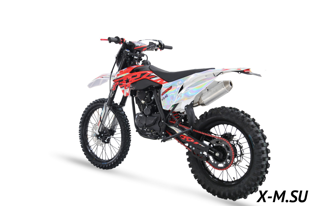 Короткоходная ручка газа обеспечивает мгновенный отклик на открытие газа. Красно-белый цвет делает BRZ MX5 PR250 RED LITE 23 еще более выразительным и привлекательным. Этот мотоцикл для тех, кто мечтает об эндуро и кто уже покоряет лесные трассы!