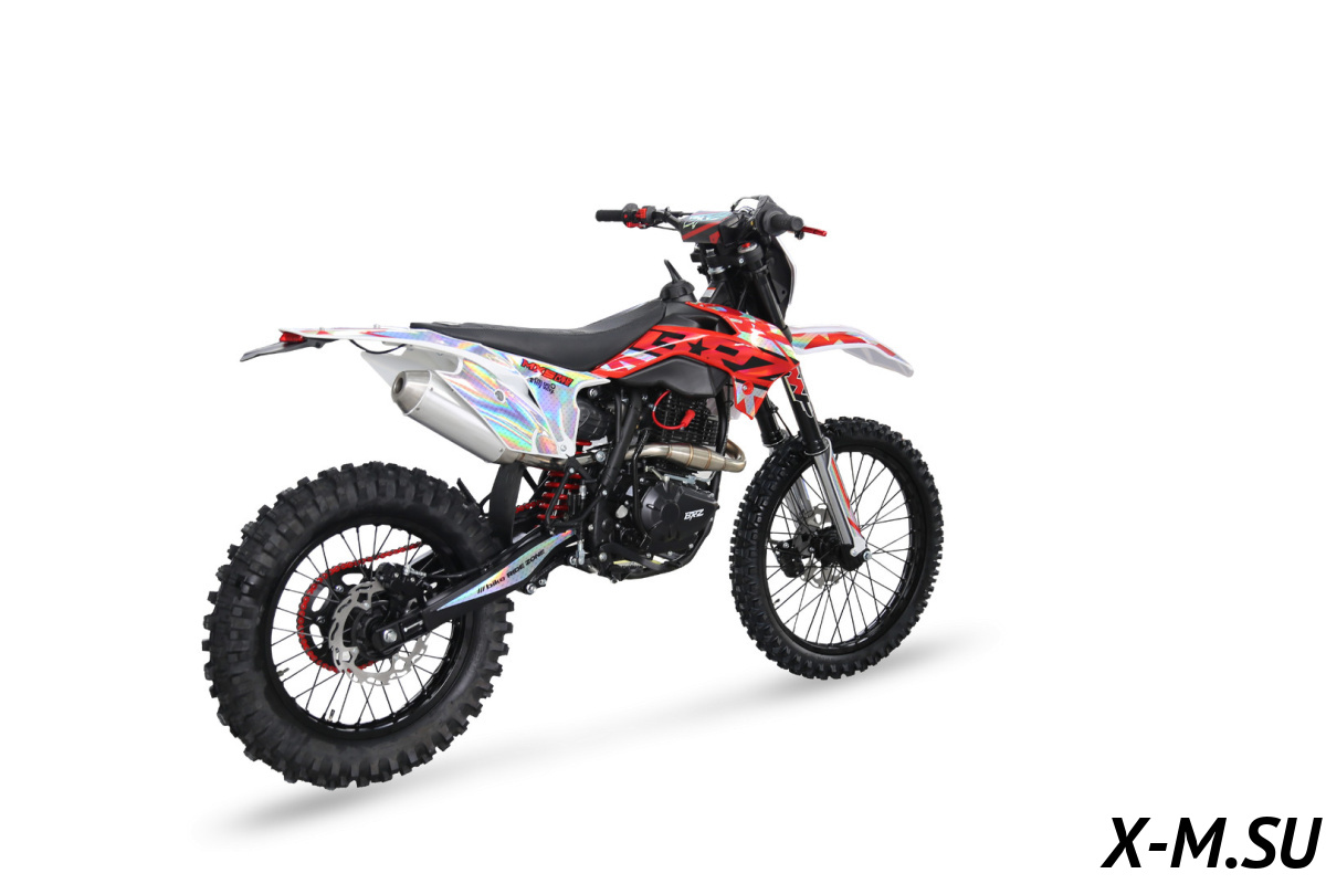 Надежный двигатель Zongshen PR250 172FMM-5 с балансировочным валом в паре с карбюратором Nibbi Racing PE30 обеспечивает уверенный разгон и отменную тягу на низах. Стальная рама и пластик типа KTM обеспечивают прочность и легкость.
