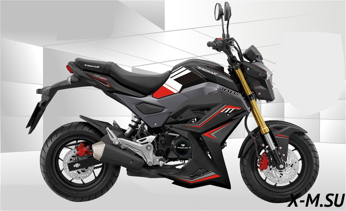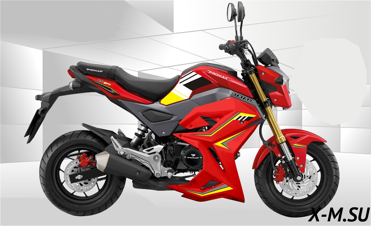 Чёткая машинка! PROMAX STRYKER 200(49) - огонь! Тащит как зверь, хотя по докам 49 кубов. Антивибрационный движок - реально кайф, руки не отбивает после покатушек. Клёвые комплектующие - KEIHIN, Brembo, Akrapovič... За свои деньги - топчик! Рекомендую всем, кто хочет надёжный и мощный мот без геморроя с регистрацией.