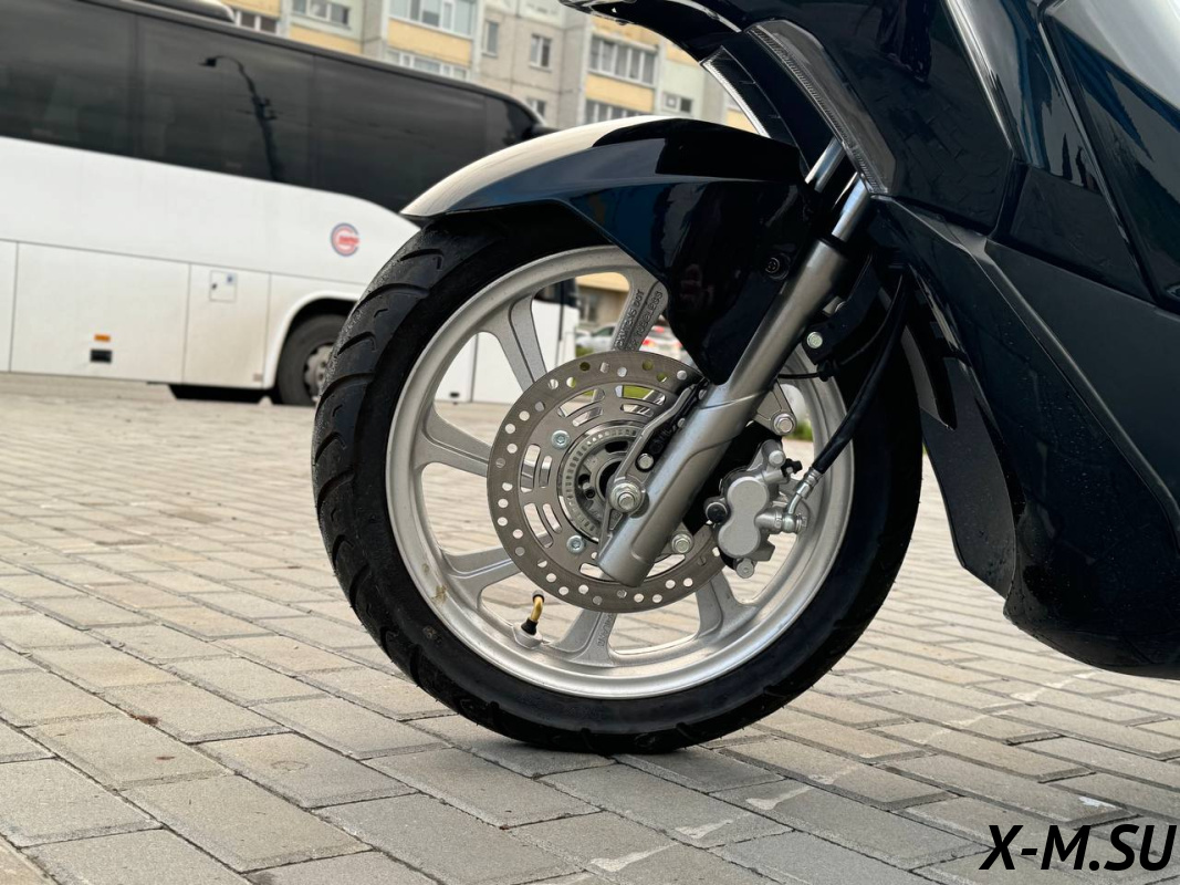 Дисковые, вентилируемые тормозные диски, с суппортами от 100%BREAK и гидравлической трассой обеспечивают мягкое торможение в любой ситуации! Колесные диски 14 радиуса – позволяют использовать скутер как по твердому покрытию, так и по грунтовым дорогам, за счет увеличенного клиренса.