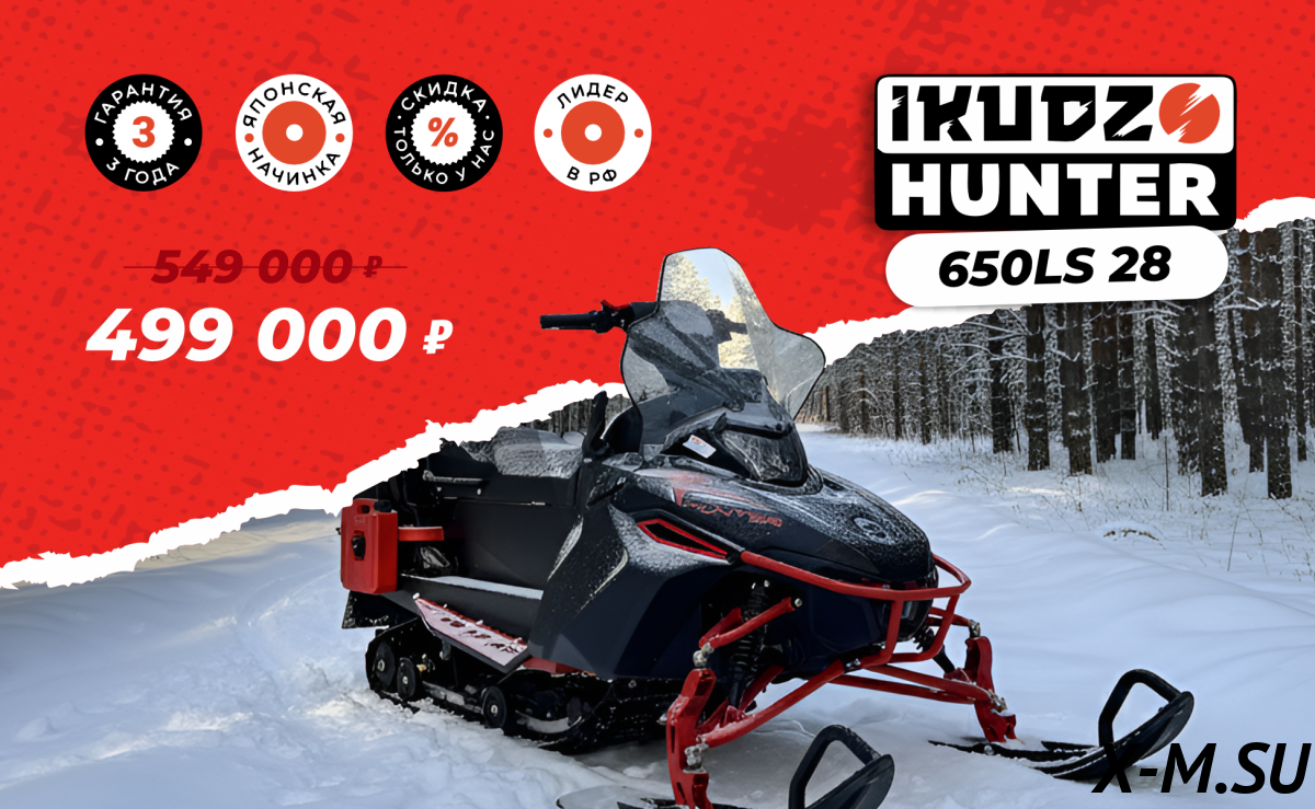 Ваще бомба! Этот IKUDZO HUNTER 650LS - просто класс. Мотор рвёт, подвеска мягкая, управление лёгкое. Проходимость супер, тащит везде. По бездорожью летит как пуля. Даже в сильный мороз заводиться с полуоборота. Качество сборки отличное, все сделано на совести. Короче, всем рекомендую не думать, а брать! Очень удобный для поездок с пассажиром, комфортно и тепло.