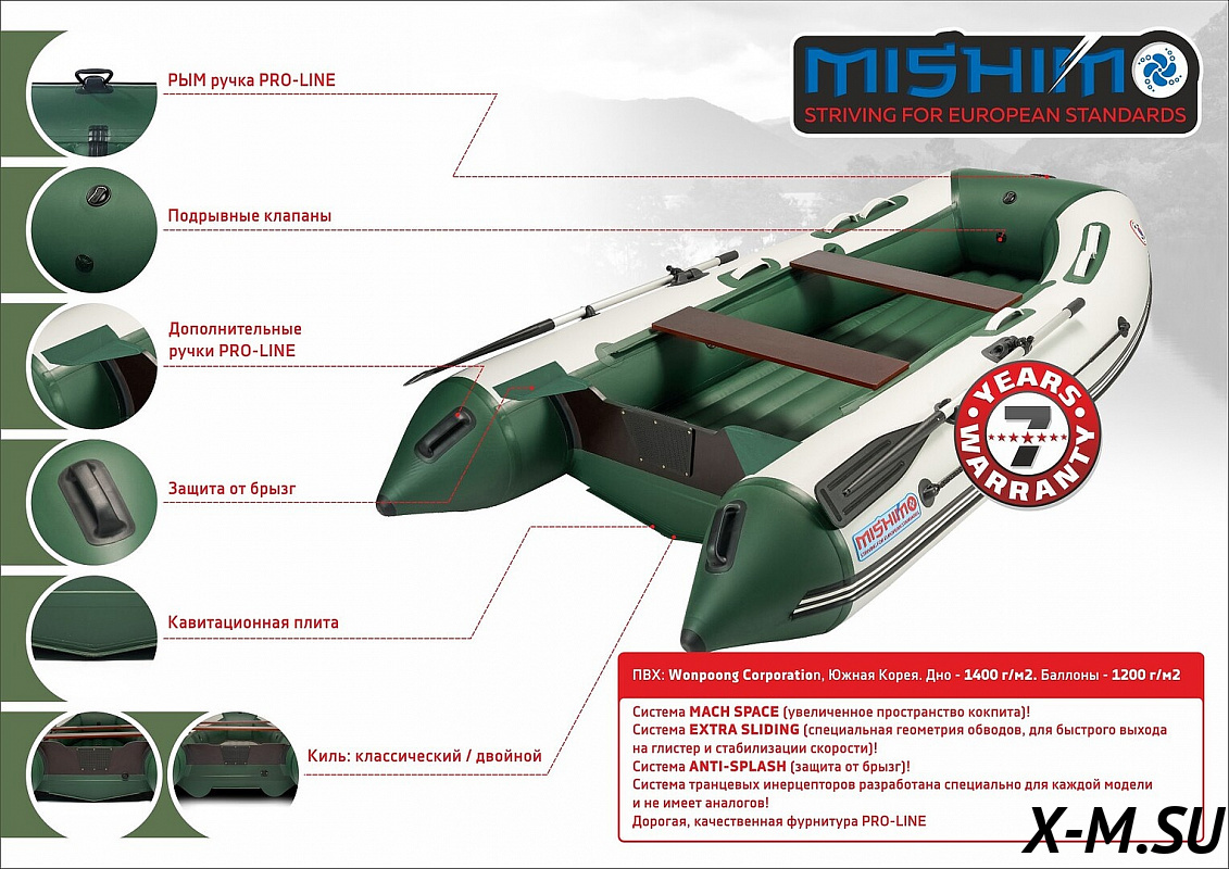 Купил Mishomo 390, отличная лодка за свои деньги. Тримаран - рулит, устойчивость просто бомба. Мотор до 25 л.с. идеально подходит. Разгоняется быстро, на воде держится как влитая. Качество ткани реально крутое, ничего лишнего, все на своем месте. Система ANTI-SPLASH работает на ура, остался доволен покупкой. Всем советую! Правда, инструкцию немного коряво перевели, но это мелочи.