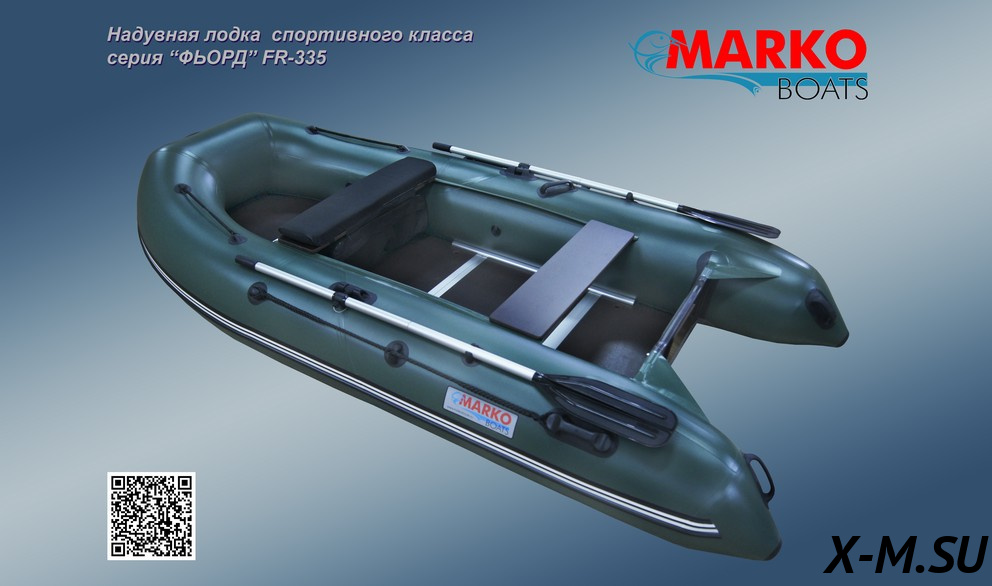Надувная лодка «ФЬОРД» FR-335 оснащена стационарным транцем толщиной 27 мм, имеющим высоту 390 мм (стандарт), на который можно установить мотор мощностью до 20 л.с.. На транце прикручены защитные пластиковая и фанерная накладки под мотор. Кроме того, как и на всех моделях моторных лодок, производимых компанией «Марко Ботс», сверху транец защищен специальным ПВХ профилем, что обеспечивает его сохранность долгие годы. Транец вклеен в корпус лодки при помощи специальных держателей из ПВХ - трансхолдеров. Корпус лодки разделен на три отсека. Боковая поверхность баллона защищена боковым ПВХ профилем с брызгоотбойником. Вклеиваемый надувной киль является дополнительным четвертым отсеком и придает лодке курсовую устойчивость. Есть сливной клапан. Лодка комплектуется жестким вставным разборным дном, изготовленным из влагостойкой фанеры с противоскользящим покрытием толщиной 12 мм., оснащенной поперечными алюминиевыми профилями "папа-мама". Продольную жесткость пайол придают алюминиевые стрингеры, поставляемые в комплекте. Лавки (банки) выполнены из ламинированной влагостойкой фанеры толщиной 18 мм, размер лавок 880х220 мм., крепятся к бортам лодки с помощью системы "ликтрос-ликпаз", позволяющей выбрать наиболее удобное положение и, при необходимости, быстро поменять положение лавок. На носу лодки и на конусах баллонов для удобства переноски собранной лодки вдвоем установлены ручки ПВХ. В базовой комплектации уже установлена защита надувного киля, защита транца снизу и защита баллонов в кормовой части. Для транспортировки используются удобные транспортировочные сумки: одна для корпуса лодки, другая для разборного днища и лавок. Весла и стрингеры транспортируются в отдельном чехле. Транспортировочные сумки шьются из ткани Oxford 600D с ПВХ пропиткой.