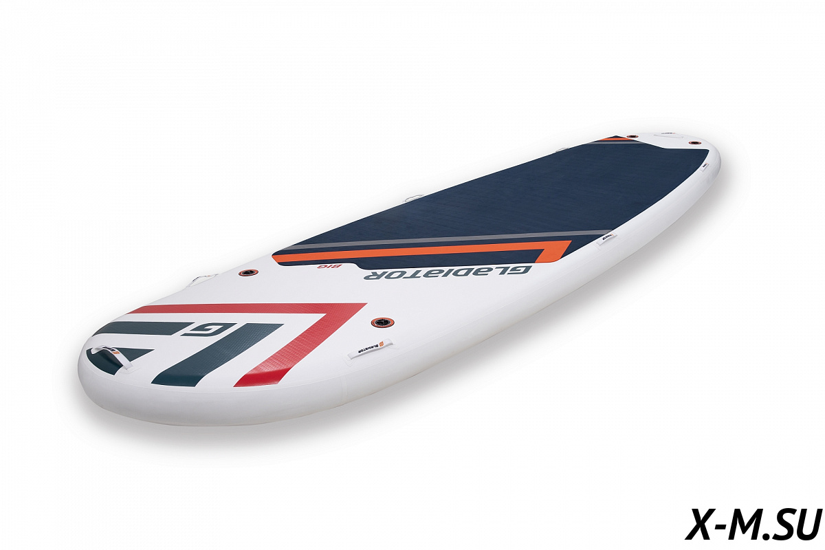 Размеры доски впечатляют — в длину она 518 сантиметров, в ширину — 152 см. Это одна из самых больших надувных досок на рынке сапбордов. На верхней части у Гладиатор BIG Sup 17.0 есть специальная прорезиненная подложка, благодаря которой райдер не будет соскальзывать с доски во время купания. Для того, чтобы накачать доску, в неё встроено целых 4 клапана для насосов. Внутреннее давление доски — 26 psi — это очень хороший показатель, который обеспечит достаточную жёсткость.